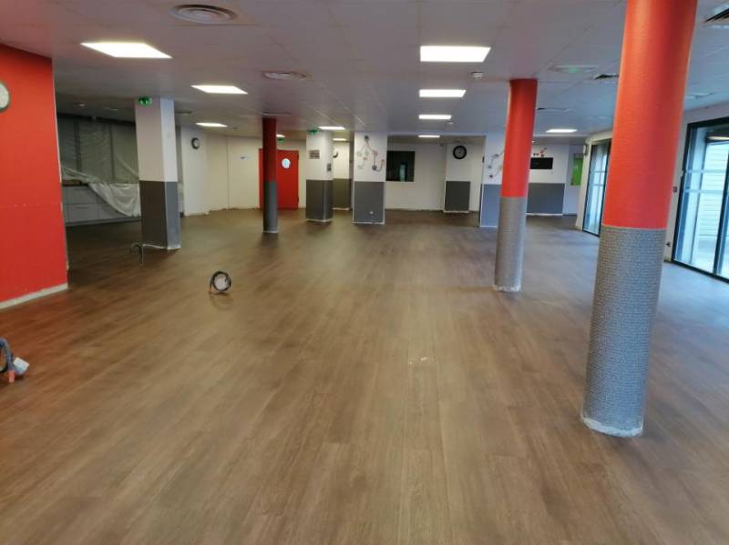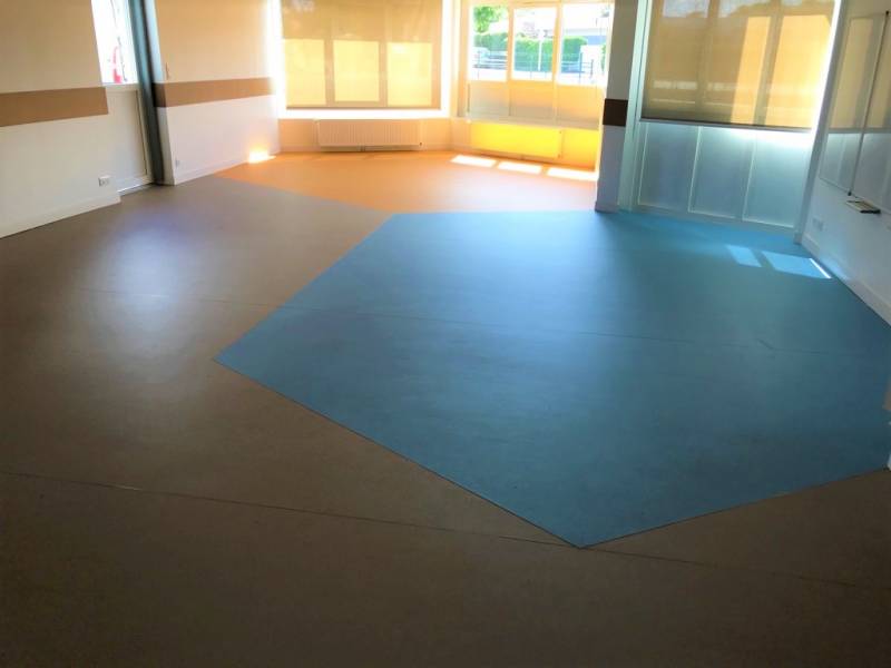 Pose de sol P.V.C en rouleaux de la gamme FORBO Ecole maternelle à Biscarrosse dans les Landes