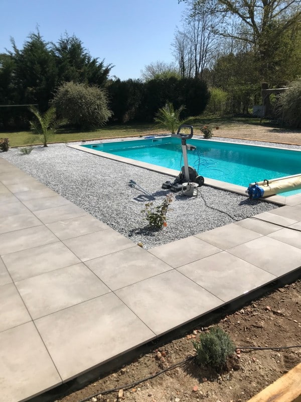 Une nouvelle création pour notre entreprise Mimizan Carrelages ! Une terrasse en dalle sur plot et son tour de piscine à Pontenx les Forges: