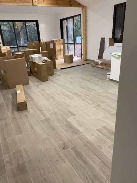 Une de nos dernières mise en œuvre de CARRELAGE 20×120 cm DESIGN BOIS NATURAL à YCHOUX dans les Landes.