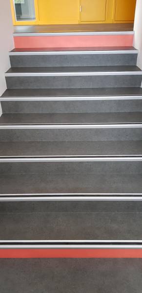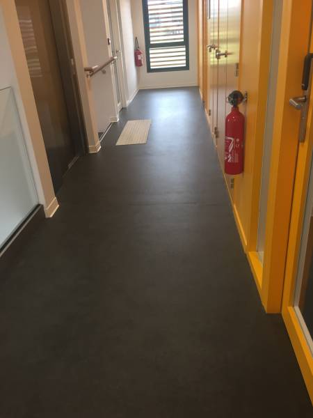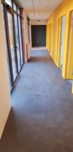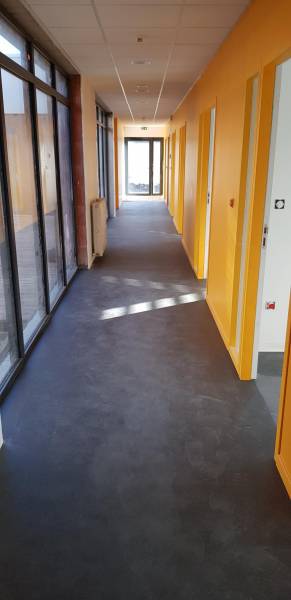 L’entreprise MIMIZAN CARRELAGES a mis en œuvre un revêtement de sol souple en lé (bobine de 50 m long sur 2 m de largeur) de la gamme TARKETT sur l’ensemble des sols du nouveau bâtiment du SIVOM du Born à Pontenx les forges.