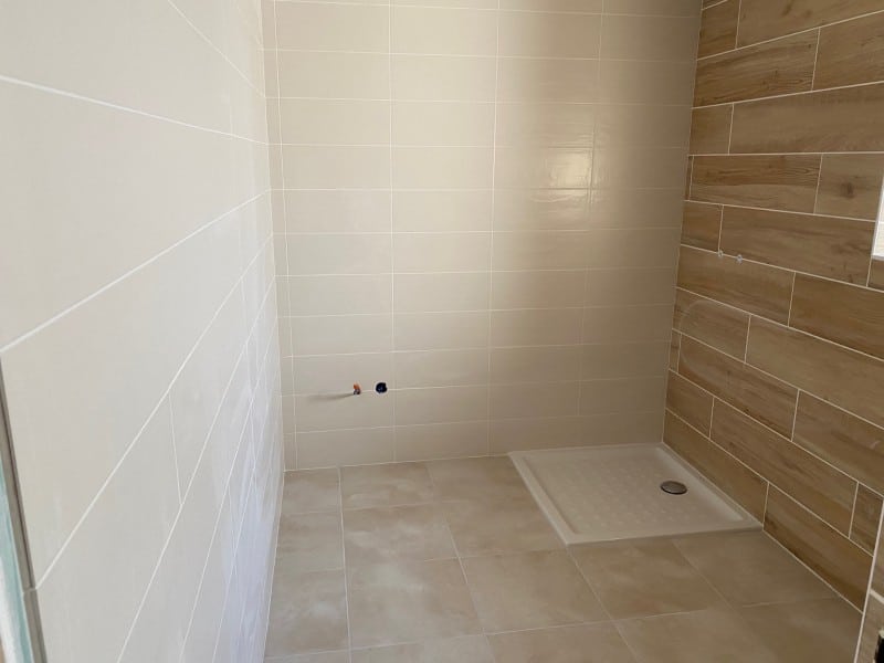 Notre équipe de carreleur a mis en œuvre son savoir faire pour le rénovation de cette salle de bains pour le sol un CARRELAGES GRÈS CÉRAME 45×45 cm série Glade pour la partie mur nous avons posé une faïence en format 20×60 cm mais également un carrelage grès cérame imitation parquet pour le côté douche.