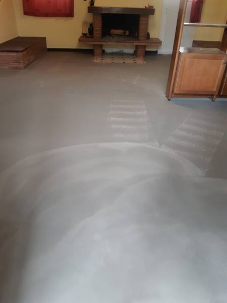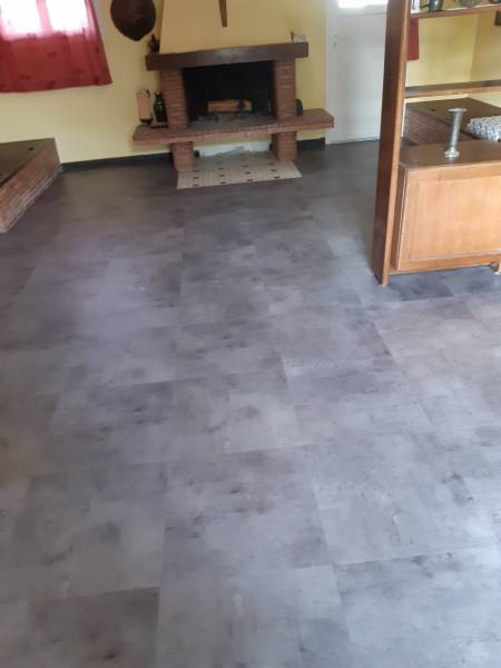 Travaux de pose des DALLES PVC en 50 x 50 cm effet Béton de la gamme TARKETT pour la Rénovation des SOLS d’une Maison d’habitation à Mimizan dans les Landes